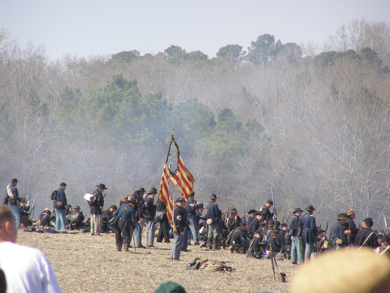 (according to the newspaper, the Union re-enactors had to get up again after playing dead because there were too few of them)